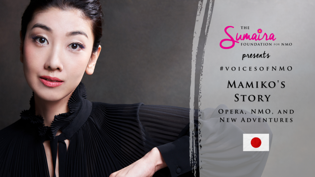 Mamiko’s life suddenly and drastically changed in 2016 when she became paralyzed from the chest down and diagnosed with NMOSD. After spending months in rehab, Mamiko decided to shift her attitude to a more “peaceful” state to continue pursuing her dreams. She eventually returned to the stage as an opera singer and continues to do what she loves.